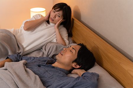 睡眠時無呼吸症候群は、眠っている間に呼吸が一時的に止まる状態(無呼吸)を繰り返す病気です。主な原因は、睡眠中にのどの筋肉が緩んで空気の通り道(気道)が狭くなることで、特に肥満傾向の方に多く見られます。