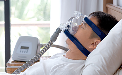 経鼻的持続陽圧個々有料法の略で、一定圧を加えた空気を鼻から送り込むことによって上気道を広げて気道を確保し、無呼吸を防ぐ治療法です。